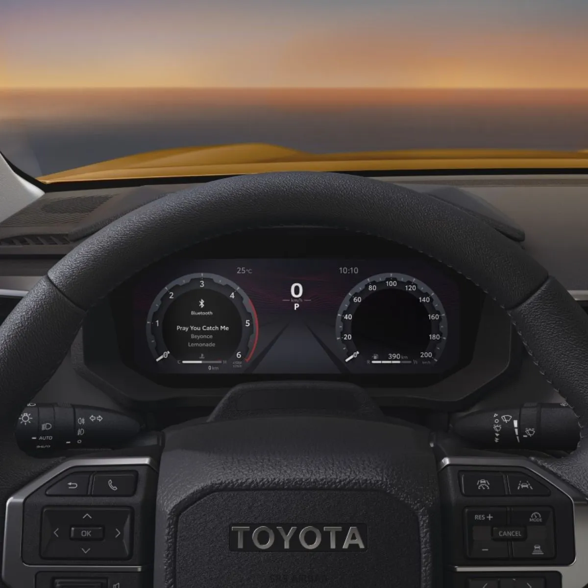 Toyota Hilux oferuje zaawansowane rozwiązania cyfrowe, w tym 12,3-calowy kolorowy wyświetlacz w zestawie wskaźników oraz równie duży ekran dotykowy systemu multimedialnego, który zapewnia wygodny dostęp do nawigacji i funkcji rozrywki. System kamer 360° (PVM) z widokiem panoramicznym ułatwia manewrowanie, pozwalając dokładnie kontrolować otoczenie pojazdu i omijać przeszkody niewidoczne z perspektywy kierowcy.